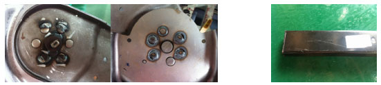 焊前做好铝合金表面去氧化膜和油污清理,以减小碳氢化合物的不良影响,焊缝背面使用垫板防止熔池的塌陷。另外,在不同铝合金的激光焊接中都发现存在一个激光能量密度阈值,低于此值,工件仅发生表面熔化,而一旦达到或超过此值,熔深会大幅度提高,因此铝合金激光焊接对激光器的输出功率和光束质量要求很高。图 5 是采用zksx 3004对汽车中滤清器的焊接。